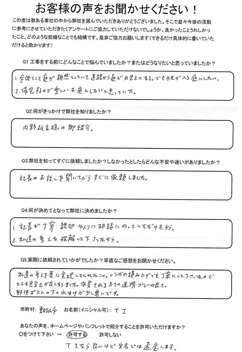 その声参考に当社の経験と知識をいかしてよりよい庭になるように心がけております。