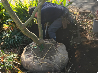 落葉樹と常緑樹によっても移植しやすい時期もことなり、掘り取りの仕方もしっかりと根鉢をつくってコモや藁で巻いた方が良い木と根鉢を作らないかわりに根を切らずに先の方まで掘り下げていく木もあります。